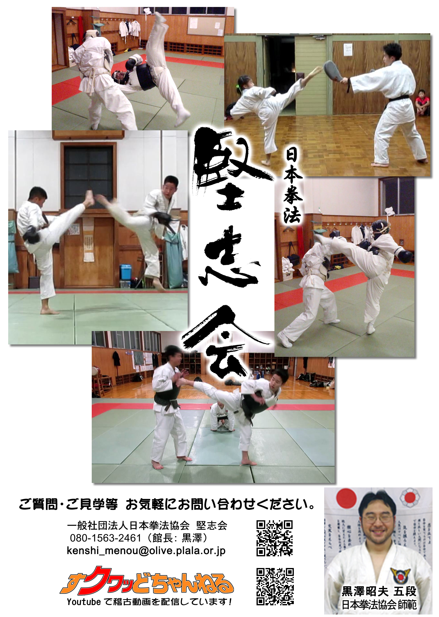 | 稽古日時 | 毎週水曜日 | 19:00 ~ 21:00(未就学児は20:00まで) |